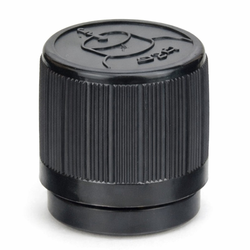 Dop zwart kindveilig garantiesluiting schroefdop din18 18/410. Geschikt voor alle glazen flessen d18 met een fleshals van 18 mm. Schroefdoppen met kind beveiliging. Verpakking per stuk. op bestelling leverbaar.