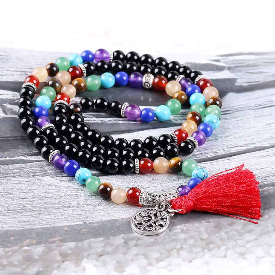 Wikkelarmband zwarte onyx levensboom armband natuurstenen chakra yoga reiki Mala
